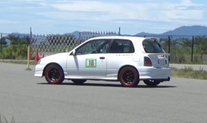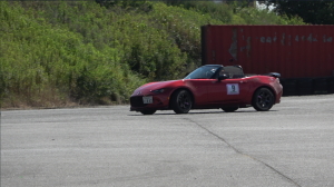 初めてにも関わらず参加18台。盛り上がりました。午前中はStage.1 日頃オートテスト開催の舞洲モーターランド、通常のジムカーナと違うのは4輪がゴールエリア内に停止しないとペナルティとなり、パイロンの間隔が狭く針の孔を通す正確さが要求されます。今回優勝候補の2名はどちらも33秒台と最速タイムをたたき出すもパイロンタッチで2秒のペナルティ、午後からのStage.2に巻き返しを図るも、赤瀬選手のMR-SがStage.1,Stage.2でコンスタントにタイムを刻み、Stage.2では最速タイムで優勝。2位には深町選手がNBロードスター、3位に友次選手のロードスターが入りました。